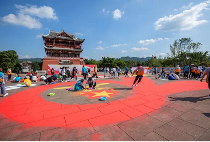 這幅400平米的巨幅沙畫,將由大家在沙畫專業(yè)老師的帶領下共同完成。此刻,我們都是造夢者,共繪航天夢,共繪幸福生活!繪制完成后,大家手上揮舞著國旗,一起合唱“唱支山歌給黨聽”。
