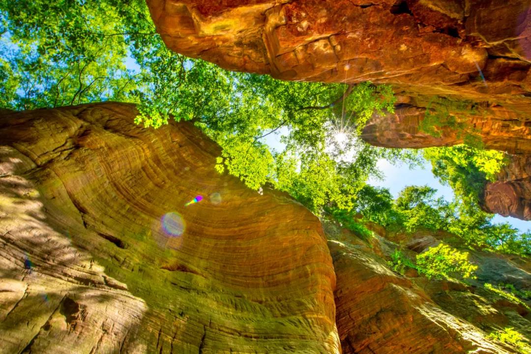 龍?zhí)洞髰{谷景區(qū)是世界地質(zhì)公園,森林植被覆蓋率高達95%,是一座天然綠色寶庫,空氣質(zhì)量優(yōu)良,負氧離子含量極高,趕快行動起來,給你的身體充一次電!