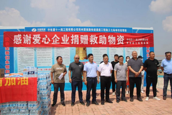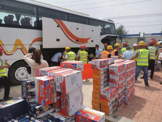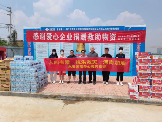 一方有難,八方支援。河南永安文旅第一時間積極參與防汛救災(zāi)工作,為受災(zāi)群眾和一線工作人員貢獻應(yīng)有的力量。在防汛救災(zāi)、支援群眾、恢復(fù)重建的關(guān)鍵時期,7月24日晚,河南永安文旅總經(jīng)理孫才華與鄭州市城市路網(wǎng)工程建設(shè)中原片區(qū)指揮部樊開磊取得聯(lián)系,獲悉我市西三環(huán)東馮灣北跨渠生產(chǎn)橋附近工地現(xiàn)場,一直斷水?dāng)嚯,?00余名抗險救險農(nóng)民工兄弟由于遠離市區(qū)、交通不便飲水和吃飯出現(xiàn)很大問題,希望社會組織對受災(zāi)農(nóng)民工進行生活物資援助。在得知這一情況后,立即組織人員連夜多方采購礦泉水、桶面、火腿腸等生活物資,7月25日一早為受災(zāi)的農(nóng)民工兄弟送到工地,進行了點對點落地捐贈!用實際行動為這次汛情救援貢獻自己的一份微薄力量!