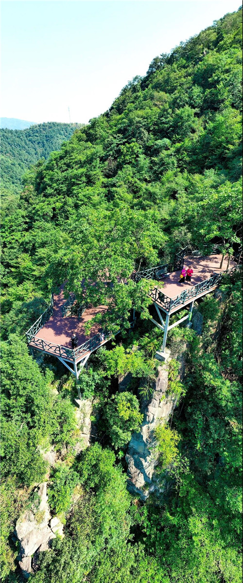 古樹、怪石、瀑布隨處可見,極目遠(yuǎn)眺,滿目蒼翠,仿佛整個(gè)天空和大地都是你的,天很藍(lán)、云很低,伸出手就能觸碰到天空,涼風(fēng)有信,如約而至,霎時(shí)間,涼爽由表及里。