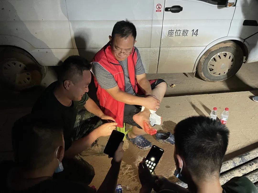 在第4次通宵清理米河鎮(zhèn)街道淤泥時,白相國同志左腳被淤泥中的玻璃扎了一個兩公分深的口子,血流不止,同事忙送他去消毒止血,他卻淡定地說:“全市全局都在救災(zāi),都在拼,咱這點(diǎn)小傷算啥?”樸素的話語讓在場志愿者們倍受鼓舞。簡單包扎后,白相國與同志們一直奮戰(zhàn)到凌晨5點(diǎn),終于將米河鎮(zhèn)主干道清理的煥然一新。
