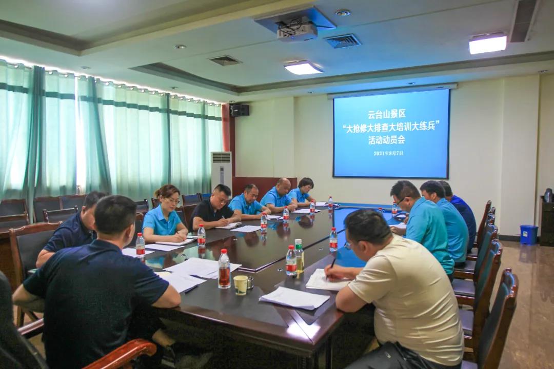 為進一步做好防汛救災及疫情防控,高質(zhì)量推進汛情疫后旅游景區(qū)復工復產(chǎn)工作,8月7日,河南省文化和旅游廳組織召開了全省A級旅游景區(qū)“大搶修、大排查、大培訓、大練兵”活動啟動視頻會,云臺山景區(qū)做了表態(tài)發(fā)言。會后,云臺山迅速召開景區(qū) “大搶修 大排查 大培訓 大練兵”活動動員會,對目前的災后重建和疫情防控工作再次進行全面的安排部署。