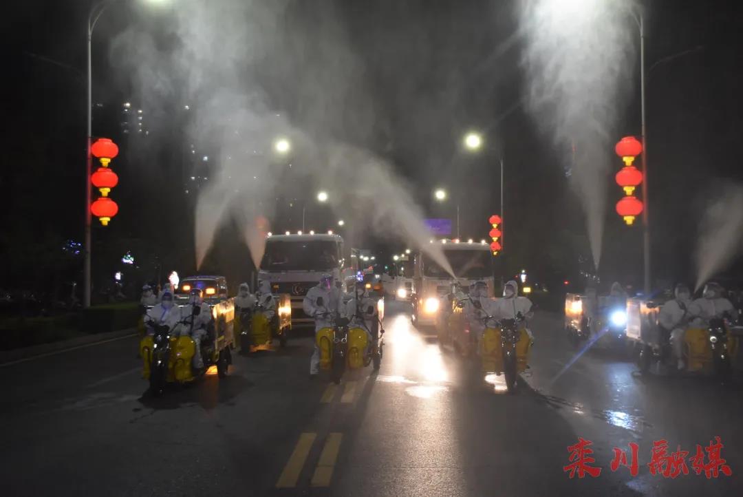 為更加有力有效做好疫情防控工作,切實保障人民群眾身體健康和生命安全,8月11日夜間,按照欒川縣新冠肺炎應(yīng)急處置指揮部統(tǒng)一部署,縣市政園林綠化中心、城市管理執(zhí)法局、衛(wèi)健委、交警隊等單位,組織人員、車輛對城區(qū)內(nèi)的主次干道、背街小巷、公共廁所等公共區(qū)域,開展全城噴灑消毒工作。