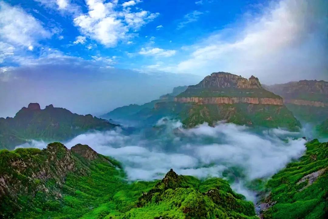 山巒青翠,云層縹緲