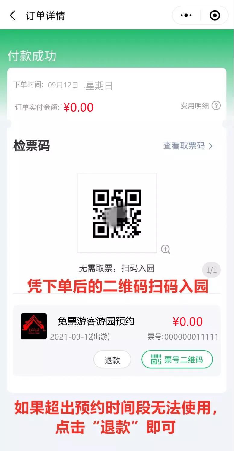 2、免門(mén)票活動(dòng)期間只接待已成功預(yù)約當(dāng)日門(mén)票的游客,且享受免門(mén)票入園的游客必須線上預(yù)約成功,入園時(shí)出示訂票二維碼;逾期作廢。