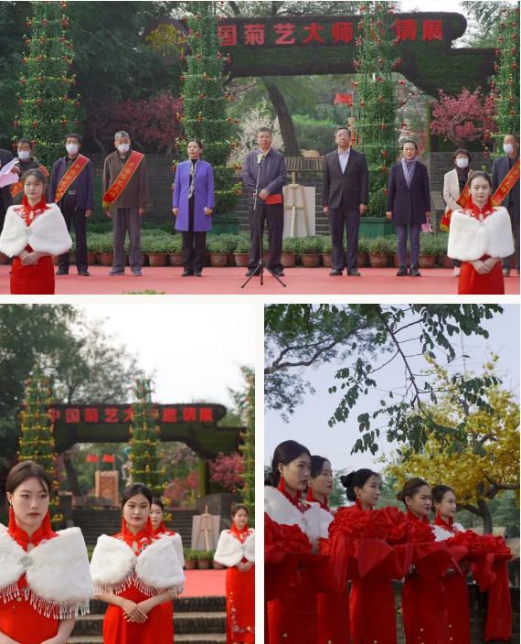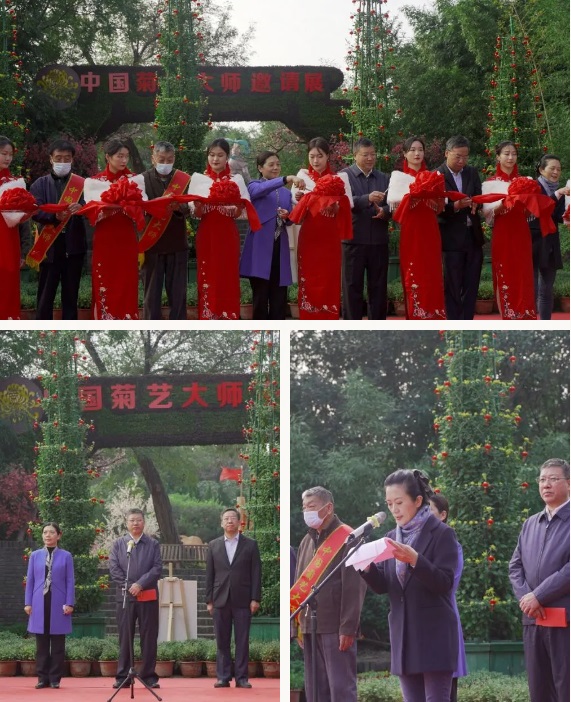 開封市政法委書記胡榮啟宣布菊藝大師邀請展正式拉開帷幕,開封市政協(xié)副主席邢廣華、開封大學校長宋曉煒、文投集團副總經(jīng)理金耀麗、中國風景園林學會菊花分會副理事長葉家良等9位中國菊藝大師代表出席開幕式,金耀麗致詞。