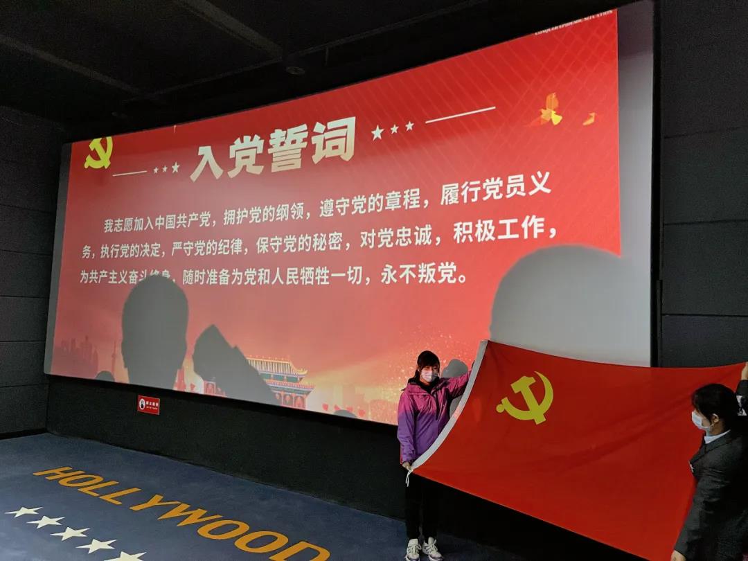 “我志愿加入中國共產(chǎn)黨……”一句句鏗鏘有力的誓詞,一聲聲篤定堅定的話語在影院上空回響。在影片開始前,黨員同志們再次面向黨旗宣誓,通過重溫入黨誓詞,讓全體黨員回顧入黨時的莊嚴(yán)承諾,時刻提醒自己所肩負(fù)的神圣使命和責(zé)任,不斷強化對我黨的忠誠和對共產(chǎn)主義事業(yè)的不懈追求。
