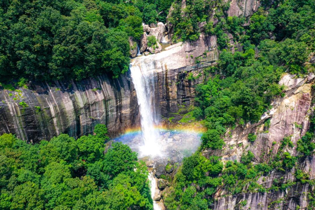 這里還有瀑布彩虹奇觀,洛陽(yáng)白云山九龍瀑布落差123米,水流撞擊巖石,水花四濺,猶如噴霧行云,陽(yáng)光透過(guò)水霧,呈現(xiàn)出一道絢麗的彩虹。