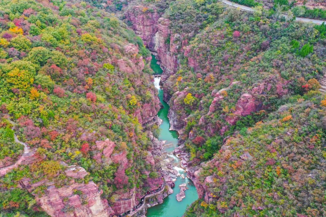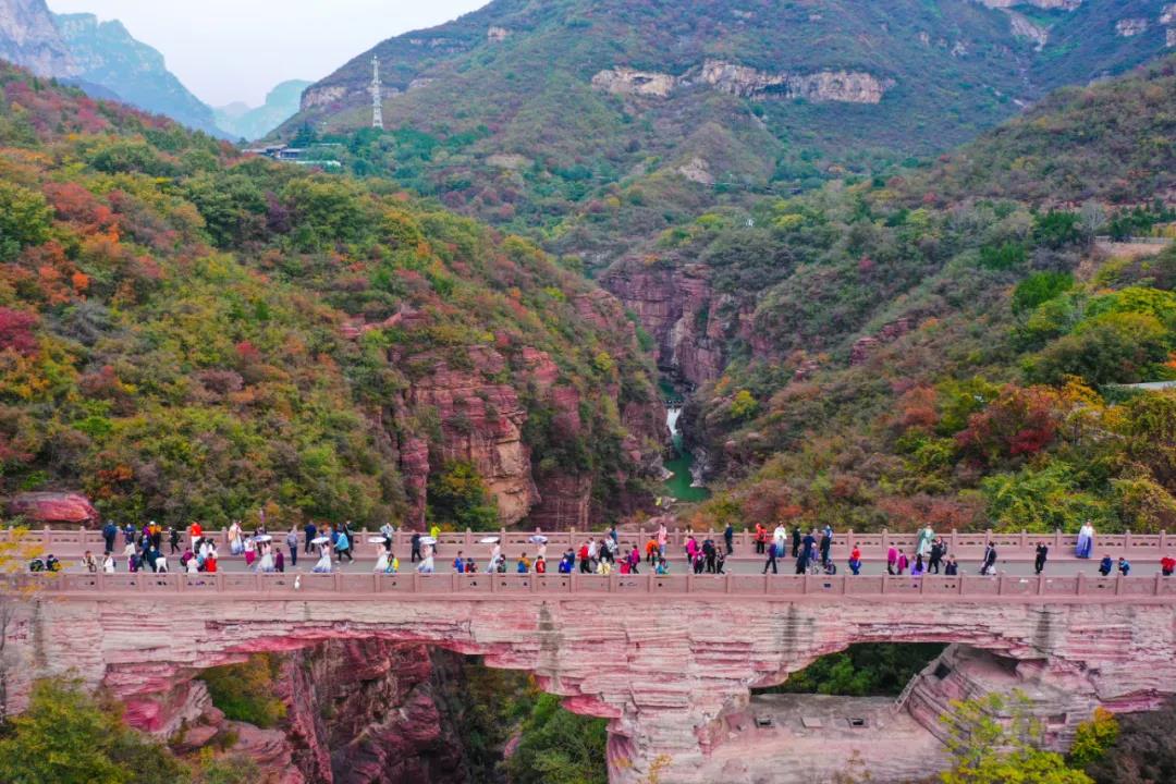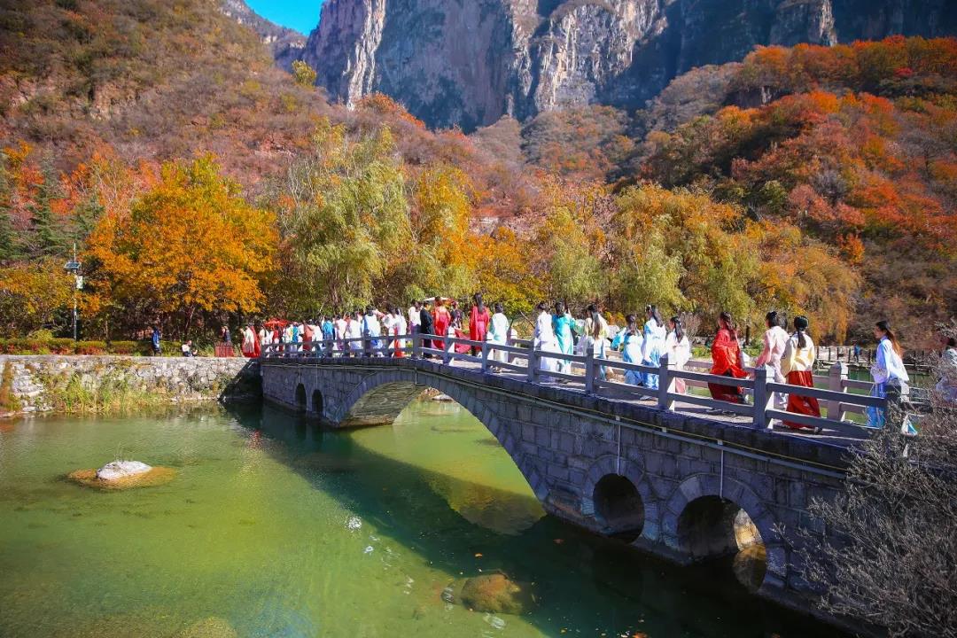 晴天暖陽,顏值爆表!“云臺藍”遇上萬畝紅葉扮靚山巒,紅葉彩林、國風演藝、山泉奔涌,萬千游客暢游云臺,盡享紅葉勝景。