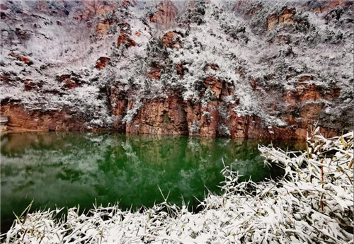 潭湖瀑布銀妝玉砌,樹木草藤冰雕玉妝,長(zhǎng)長(zhǎng)冰掛含露欲滴,冰層覆蓋的峽谷和云霧繚繞的天空,拼湊出一幅幅若隱若現(xiàn)的水墨圖畫,說是冰雪仙境一點(diǎn)也不過分。