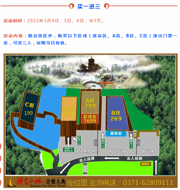 關(guān)注“禪宗少林音樂(lè)大典”官方微信公眾號(hào)點(diǎn)擊圖片進(jìn)行或直接掃碼購(gòu)票;或通過(guò)美團(tuán)、攜程、驢媽媽、去哪兒網(wǎng)、八戒游世界、輝煌票務(wù)、奧米優(yōu)選、商河票務(wù)等OTA平臺(tái)及省內(nèi)各大旅行社購(gòu)票。