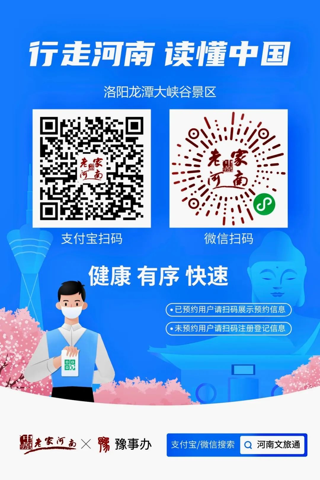 洛陽(yáng)龍?zhí)洞髰{谷景區(qū)響應(yīng)政府號(hào)召,真免票!無套路!無圈套!按照要求進(jìn)行網(wǎng)上預(yù)約或現(xiàn)場(chǎng)掃碼預(yù)約,即可入園!入園后沒有任何強(qiáng)制消費(fèi)!