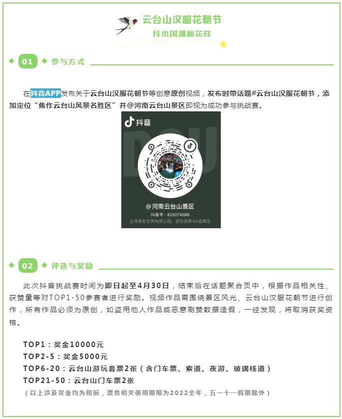 第四屆云臺(tái)山漢服花朝節(jié)、抖音挑戰(zhàn)賽、小紅書游記征集令重磅上線,拍視頻就能贏大獎(jiǎng)!四月、盧卓、宮寒、鹿荼白……十二花神、竹林七賢已就位,超人氣漢服kol名單大公開(kāi)!