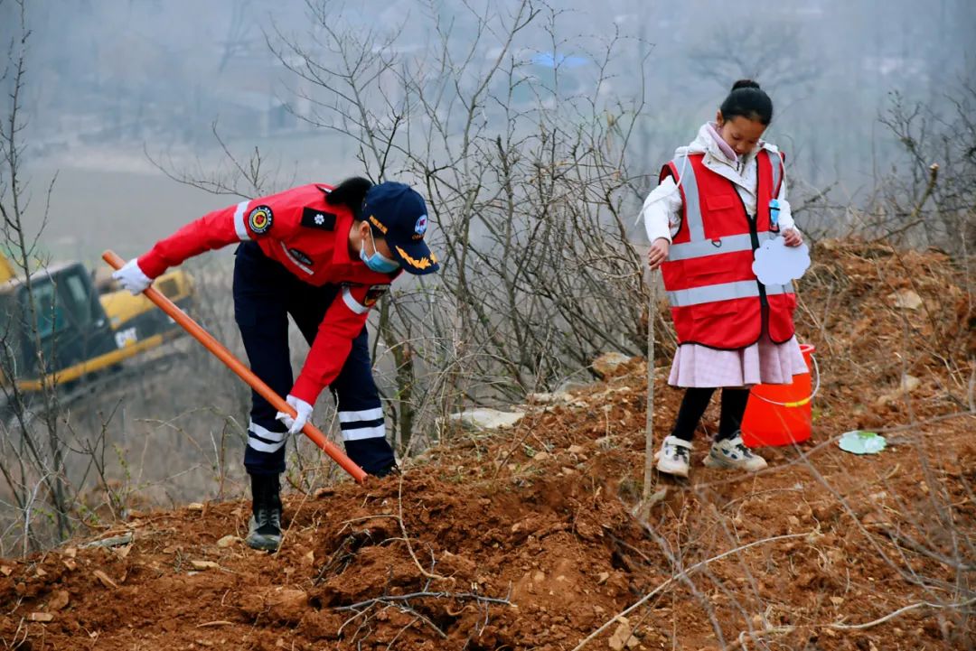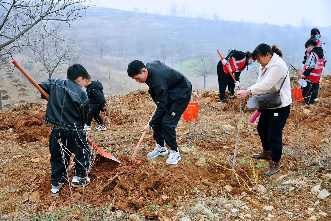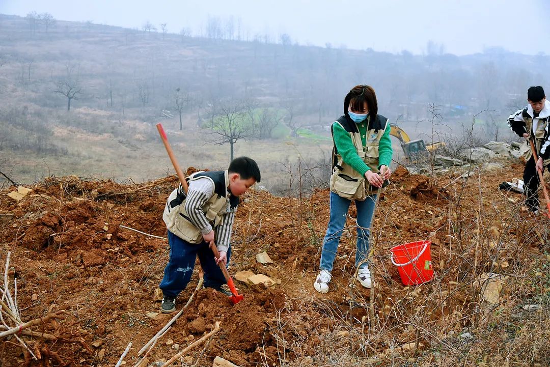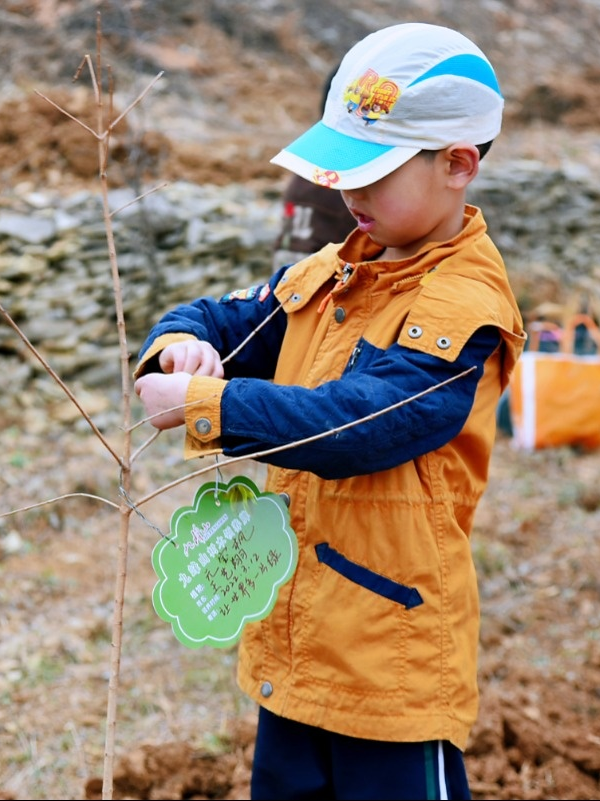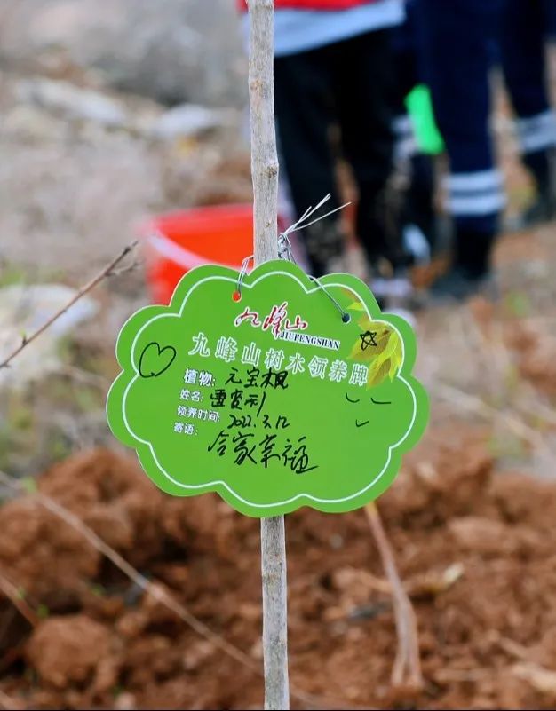 你扶樹苗、我填土、他澆水、覆土后再用力踩實(shí)。一套連貫的組合動(dòng)作后,樹苗植好。在樹上掛上認(rèn)養(yǎng)卡片,從此它不單單是一棵樹苗,更寄托了植樹人(認(rèn)養(yǎng)人)的心愿。