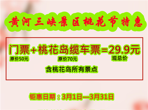 三月,宜出游,宜探花,黃河三峽景區(qū)29.9元,穿山越海,看滿山的原生態(tài)山桃花,一舉多得,滿滿的性價(jià)比~