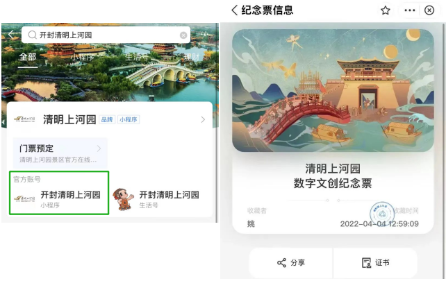 清明上河園首款數(shù)字文創(chuàng)紀(jì)念票,