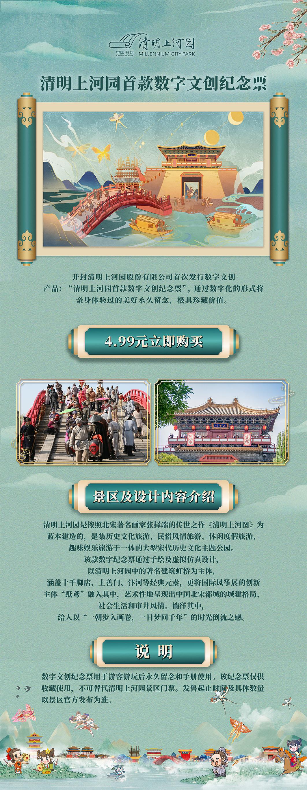 推出清明上河園首款數(shù)字文創(chuàng)紀(jì)念票。