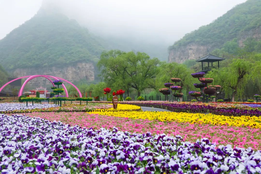 “淅淅瀝瀝”的春雨奏響,整個云臺山籠罩在綿綿細雨中,鮮花隨風微搖,絲絲云霧騰起,花海、云海將山巒峽谷裝扮得如仙境一般。