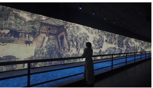 動態(tài)版清明上河圖卷全長70米,生動描繪了北宋時期的市井百態(tài)景象,日夜交替栩栩如生,咫尺畫卷窺見盛世汴梁。