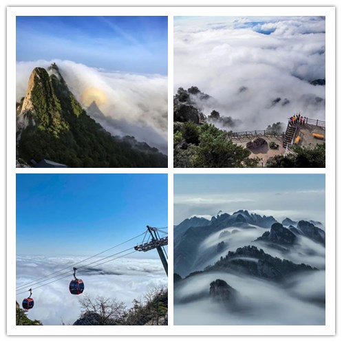 老君山海拔2217米,位于亞熱帶向暖溫帶的過渡區(qū),雨過天晴或雪后天晴時云海就會出現(xiàn),形成層積云、積雨云、卷云等等不同種類的云海,道觀金頂、云景天路是云海的最佳觀賞地,放眼望去,云遮千里,霧鎖萬峰,猶如站在碧波萬頃的汪洋大海之中。