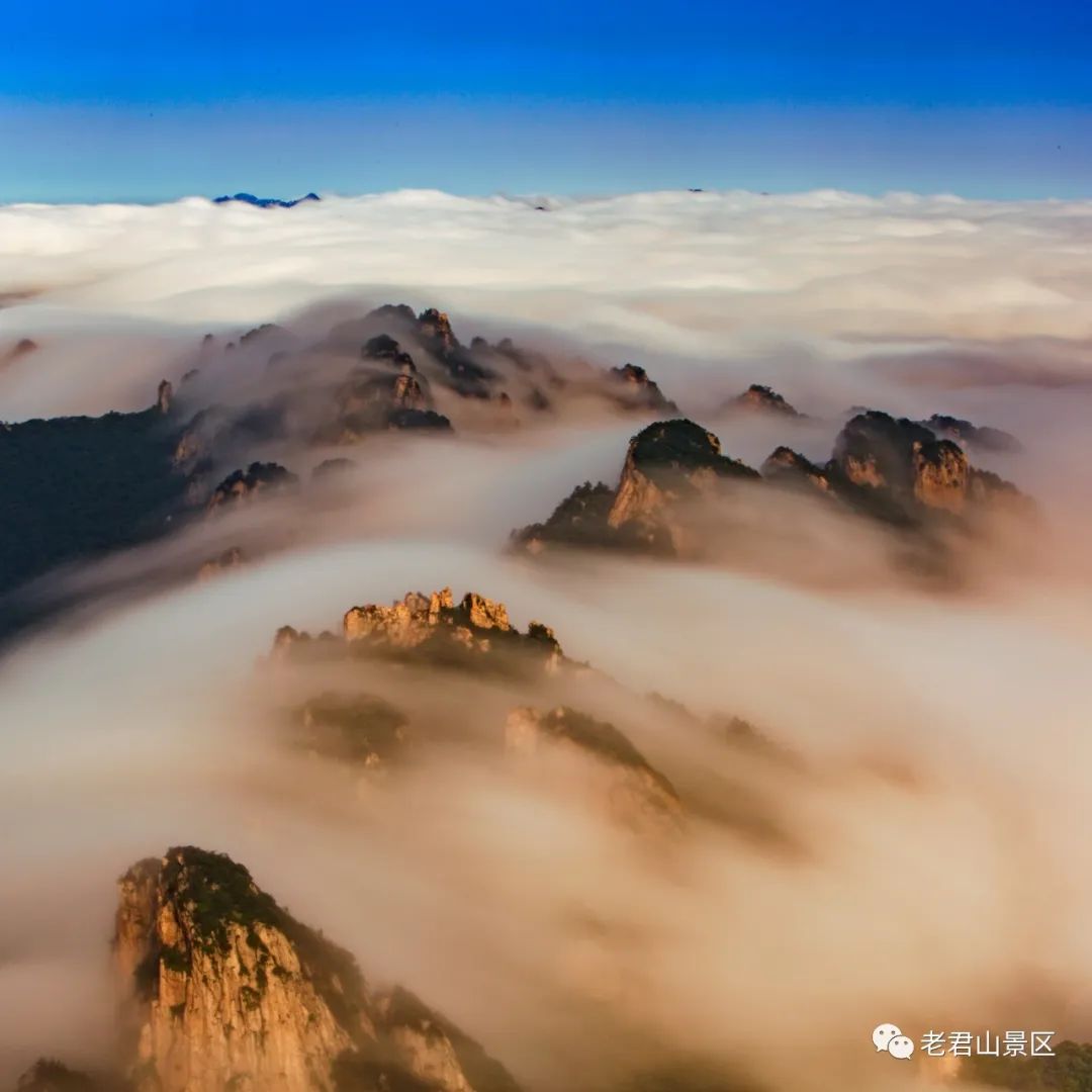 老君山的云海是裝扮大自然的美容師。山以海名,誰曰不奇?而它的奇妙之處就在于似海非海,云海山峰相幻化,山峰依托著波瀾壯闊的云海顯得更加撲朔迷離,難怪宋代詩人蘇軾曾說:古來云海茫茫,道山絳闕知何處。