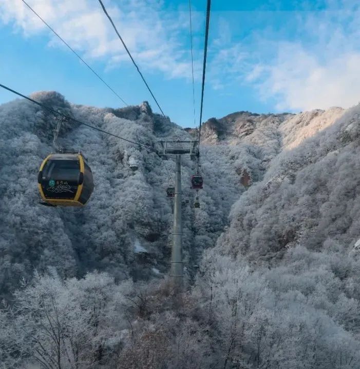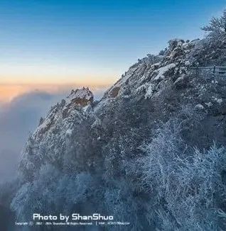 老君山的霧凇,是一場樹木與冰雪的奇緣,是一段人們與仙境的美麗邂逅,每當霧凇來臨,老君山頂?shù)乃蓸渚蜁Y(jié)銀花,把人們帶進一個晶瑩剔透的童話世界,雪是仙女撒的碎玉,是微風放飛的柳絮,是冬天特有的蝴蝶。雪中的金殿顯得更加靜謐,天地之間渾然一色,構(gòu)成了一軸風光無限的畫卷!