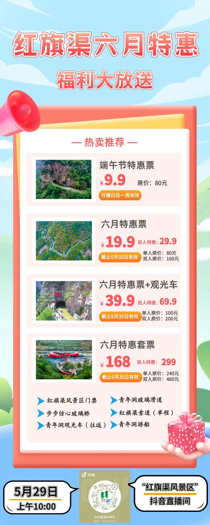 叮咚 夏日福利即將到達 請注意查收! 紅旗渠六月特惠 您的端午節(jié)假期、畢業(yè)旅行、家庭自由行... 所有福利已安排!