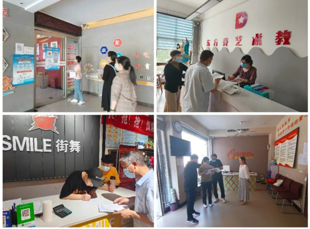 每到一處,督導組全面細致了解各培訓機構的疫情防控工作和規(guī)范教學情況。一是“看”現(xiàn)場環(huán)境、掃場所碼落實情況、人員佩戴口罩、人員登記、學生錯峰上課、消防器材及消防通道是否暢通等情況,二是“查”疫情防控預案、場所消殺記錄等臺賬,查驗場所碼后臺信息、員工每日測溫登記情況和疫苗接種情況記錄、檢查安全生產應急預案等制度,三是“問”相關負責人,了解場所內部人員有無密接者、有無被管控及封控情況,并進行記錄登記。