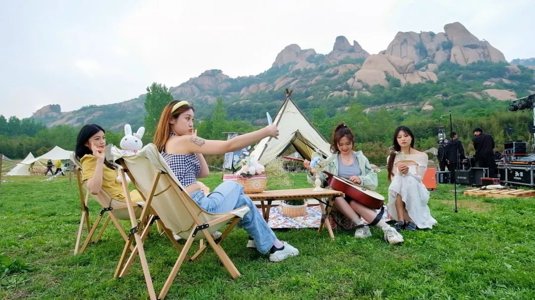夜游結(jié)束后,南門出口的嵖岈山草地露營(yíng)季正在火熱進(jìn)行中,這里的精致露營(yíng)、我是歌霸-戶外KTV、夜市美食、露天電影、篝火派對(duì)等正免費(fèi)火熱進(jìn)行中,你可以選擇在這里拍照打卡、吃燒烤、喝啤酒、唱歌聽歌、看電影。星空下,山腳旁,這里不僅僅是一個(gè)精致露營(yíng)的場(chǎng)所,更是一個(gè)年輕人的浪漫社交秀場(chǎng)。讓夜游、夜娛、夜食、夜宿、……豐富多彩的嵖岈山“夜文化”“夜生活”接檔上演。