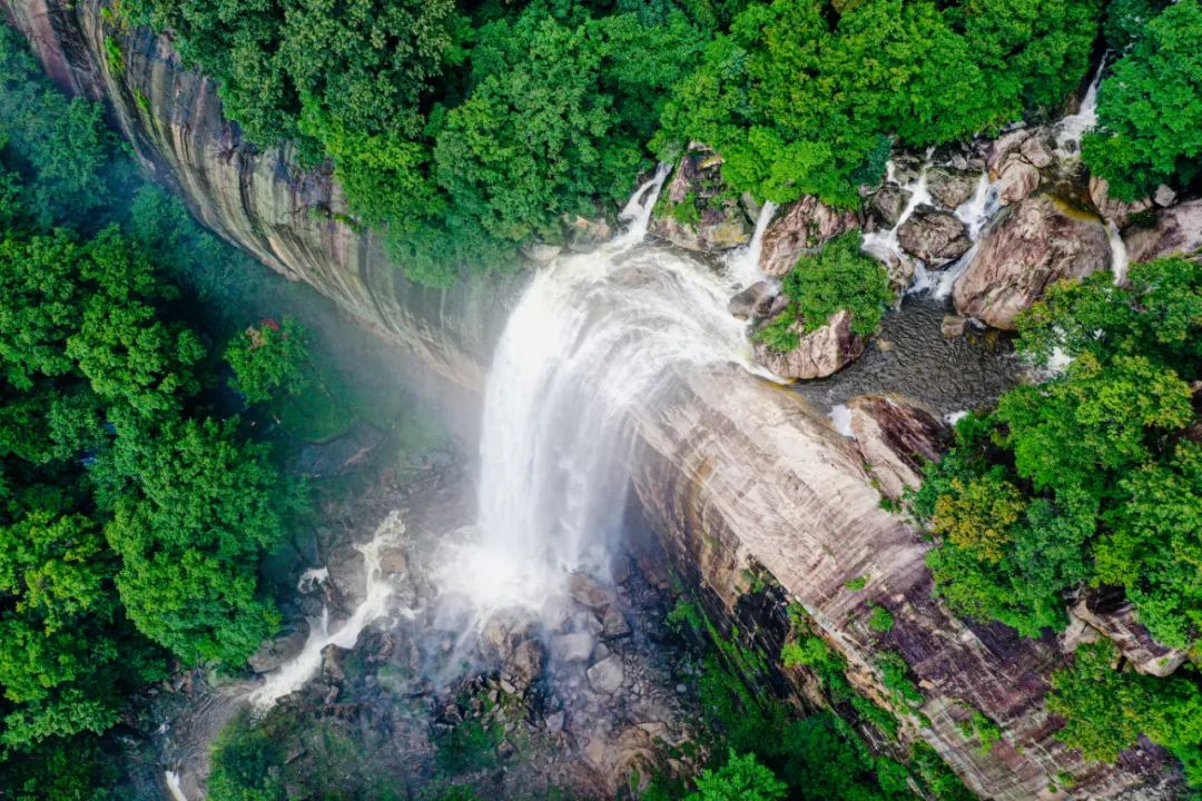 水在白云山下游豪邁壯闊,流經(jīng)九龍大峽谷,聽到雷鳴般的響聲,在九龍瀑布下觀看,更加令人驚心動(dòng)魄,直下數(shù)千尺,新月如簾鉤,都不足形容它的美。
