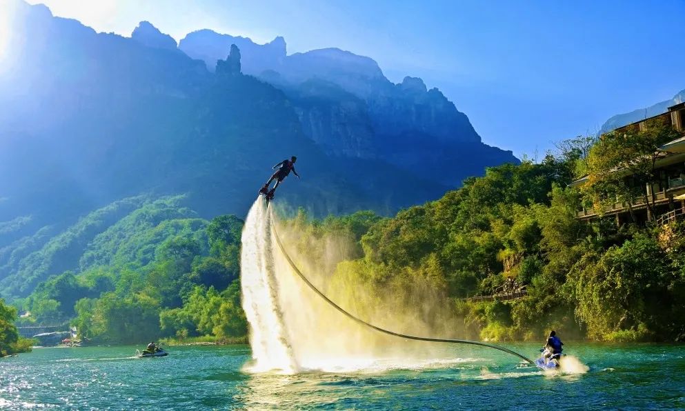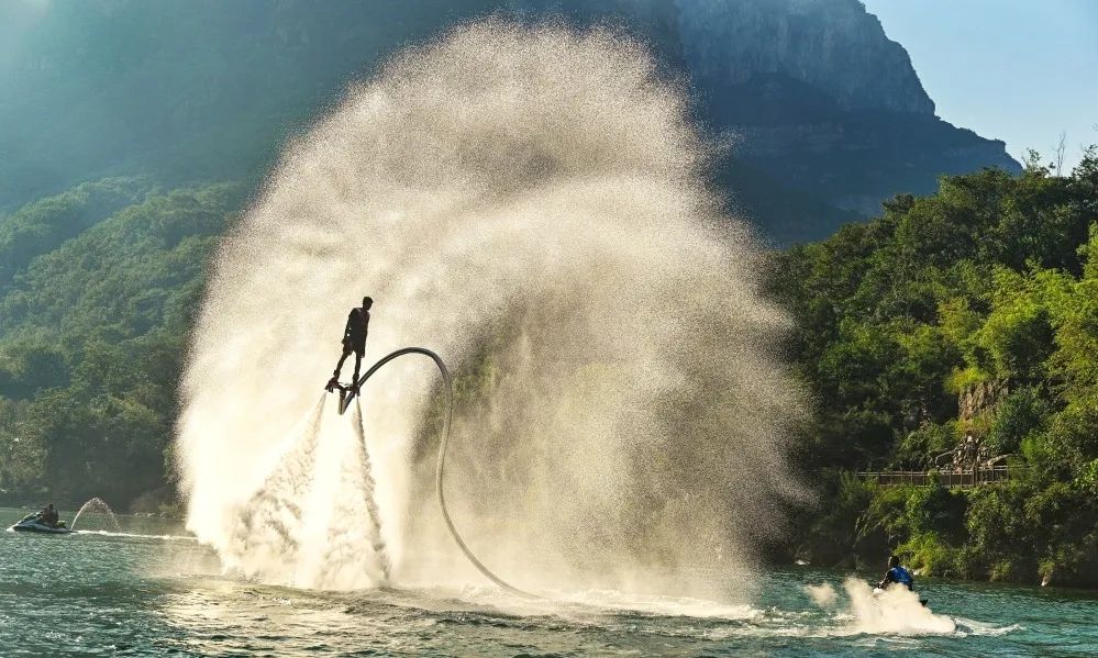 來八里溝體驗水上飛人、水上摩艇