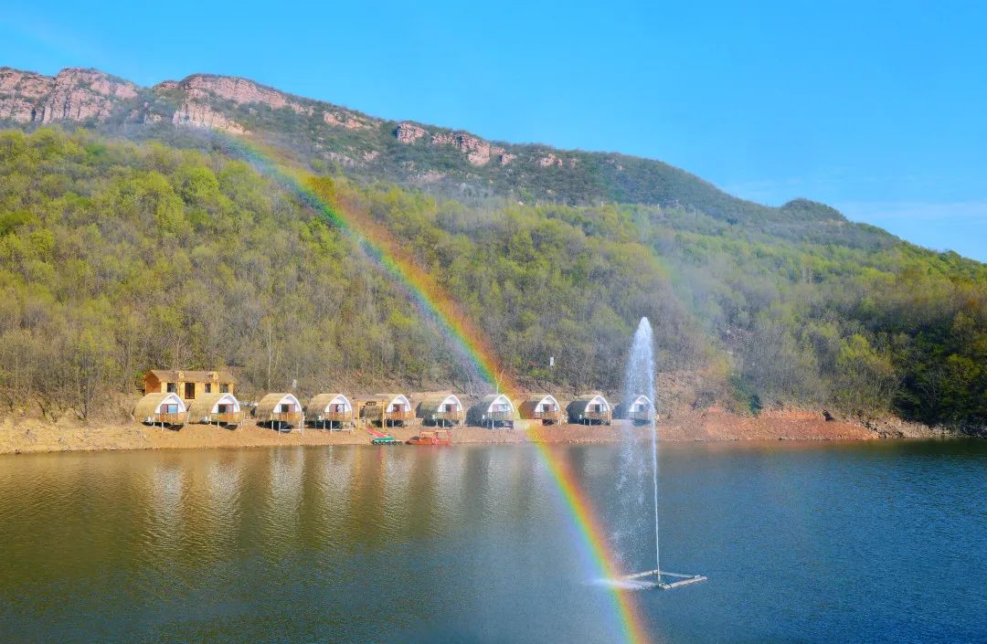 岸邊的喊泉此起彼伏,當(dāng)游船經(jīng)過,沖天的水柱瞬間上升,而后落下,在游船的周圍下一場(chǎng)“短時(shí)陣雨”。若時(shí)間湊巧,天公作美,抬頭還能看到一彎彩虹。