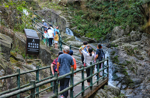 高山流水將龍津溪地形成大大小小瀑布群,賜予了我們?nèi)绱嗣谰,連青山倒映在水中亦是別有一番風味。