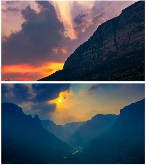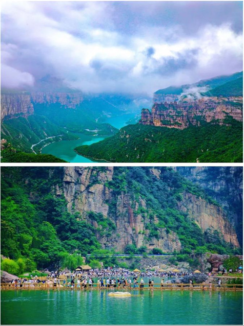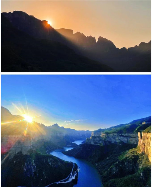 日出后得以看出寶泉大峽谷的山水全貌,綠水青山相依偎,山色沉穩(wěn),丹崖絕壁盡顯寶泉之美!