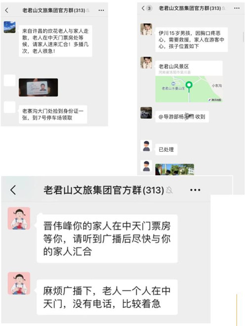 安保部工作人員接到游客緊急求助,稱孩子在景區(qū)內(nèi)走失,工作人員隨即聯(lián)系景區(qū)數(shù)字化監(jiān)控指揮中心廣播尋找信息,同時安撫家人情緒,并在工作群中通知景區(qū)全體職工留意、尋找,最終孩子在工作人員的幫助下與家人成功匯合。