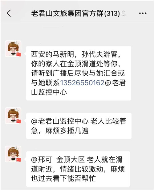 工作人員在巡邏過程中,發(fā)現(xiàn)一老人神情緊張,上前詢問得知與家人走散,因手機沒電關(guān)機聯(lián)系不上家人,經(jīng)過尋找、廣播等多方聯(lián)系,最后成功幫助老人找到家人。