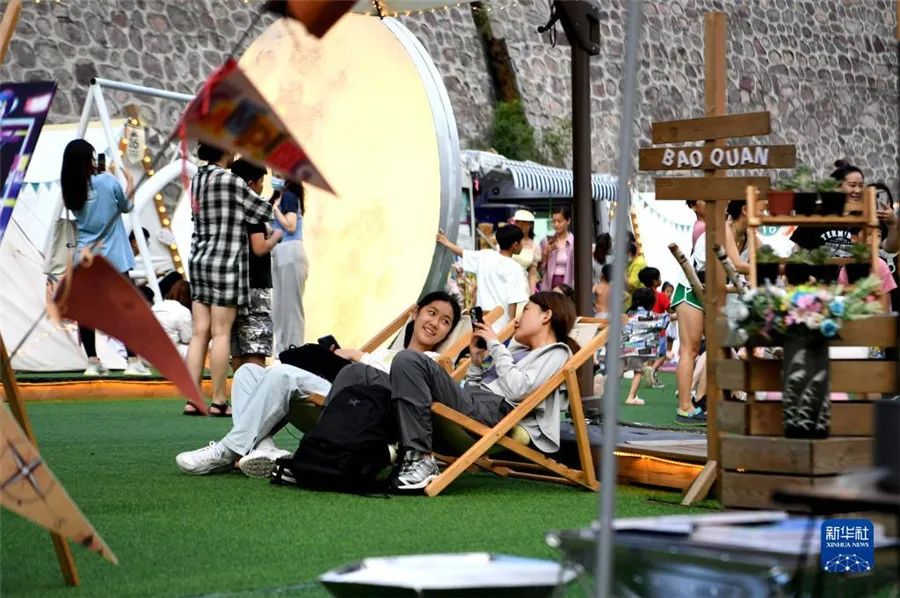 8月15日,游客在寶泉旅游區(qū)休閑娛樂。新華社記者 郝源 攝
