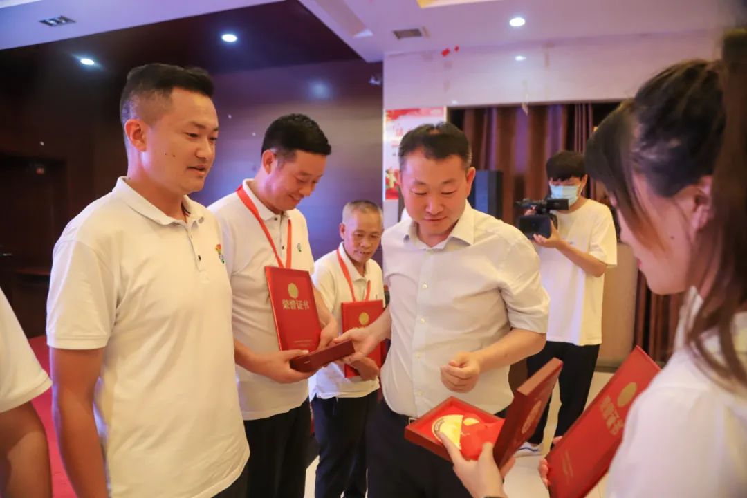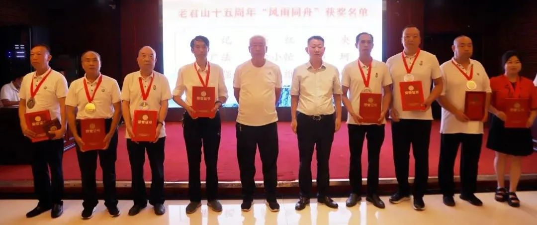 老君山文旅集團(tuán)董事局主席楊植森、董事長楊海波為他們頒發(fā)老君山“風(fēng)雨同舟”獎。
