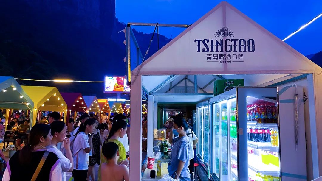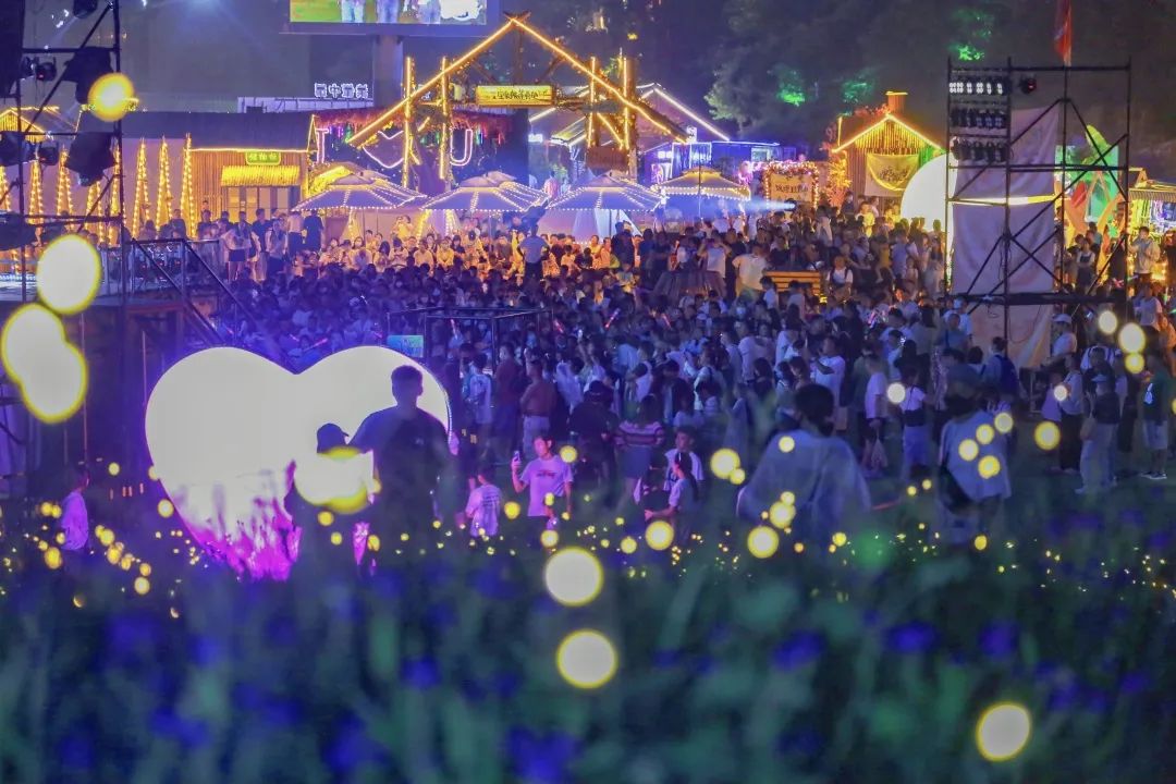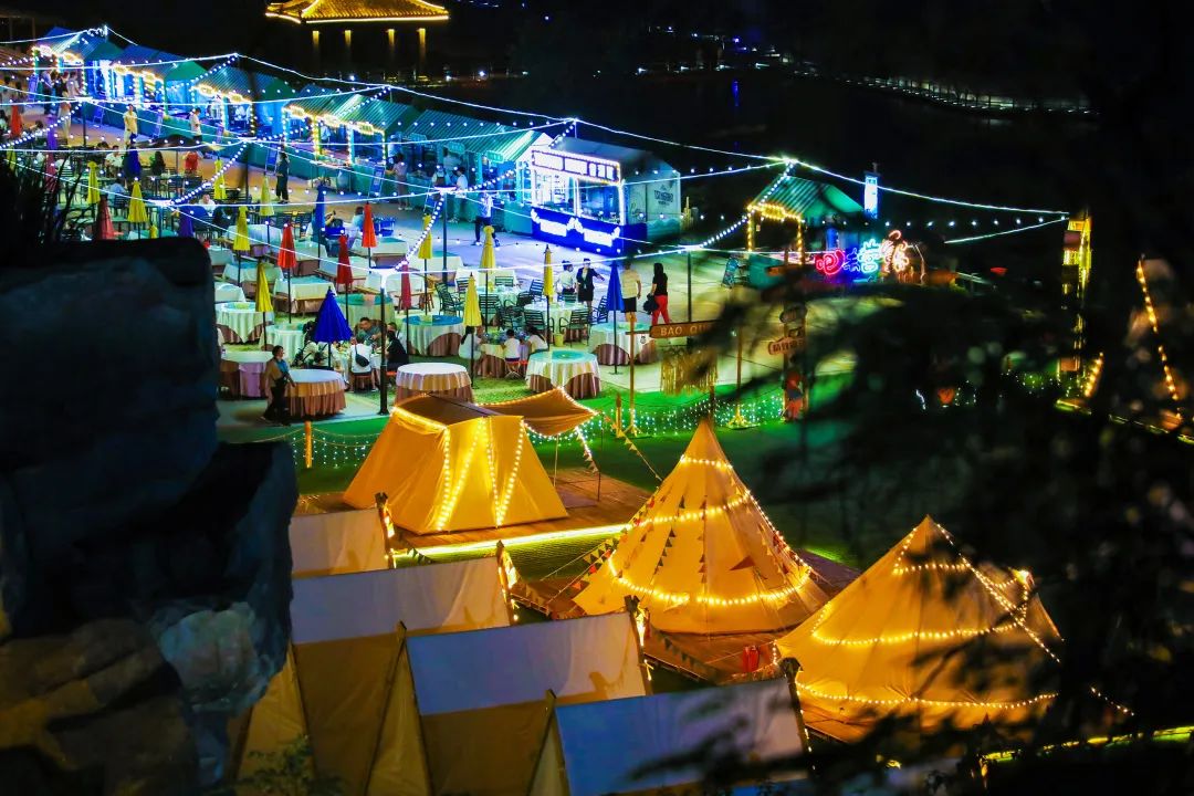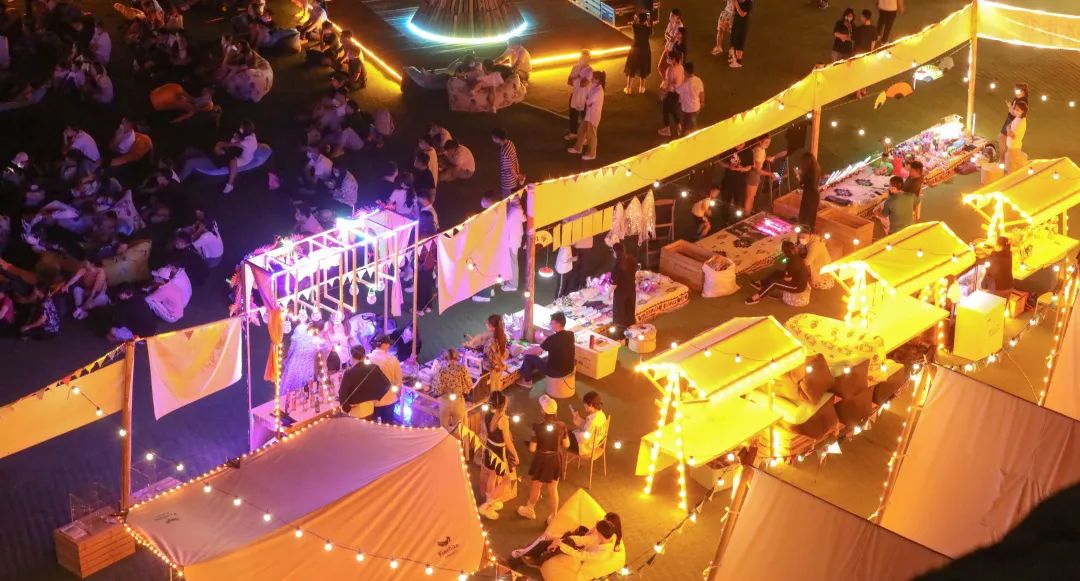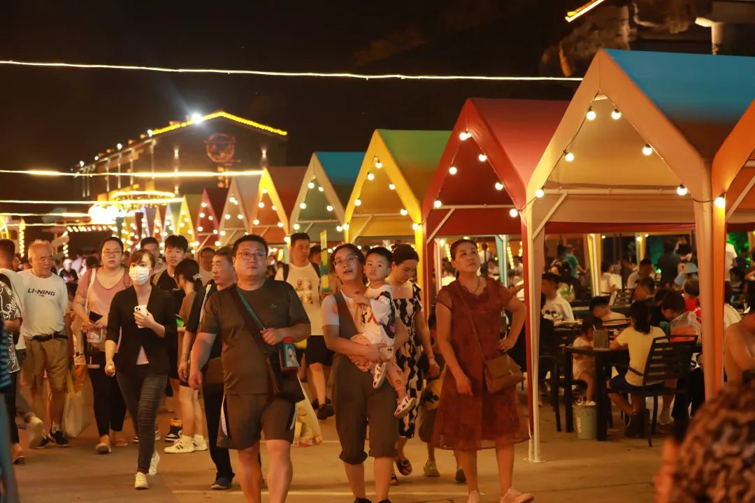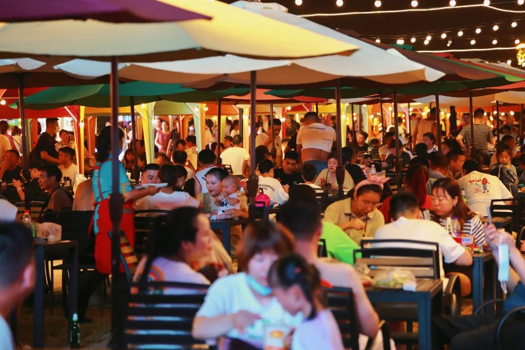 沿著美食街蔓延,照亮人群
