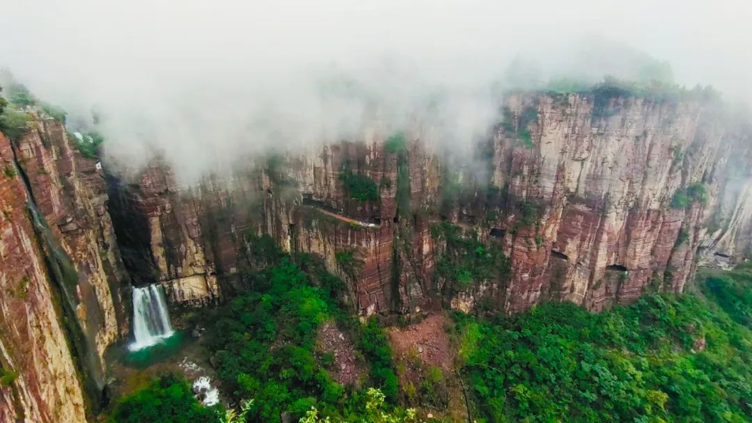 景區(qū)內(nèi),一落千丈的紅巖絕壁,綿延無(wú)際可謂鬼斧神工。青山、碧水、白云、藍(lán)天與古樹(shù)、林蔭、山風(fēng)、民宅相映成趣,組成獨(dú)領(lǐng)太行風(fēng)騷的奇特佳境。