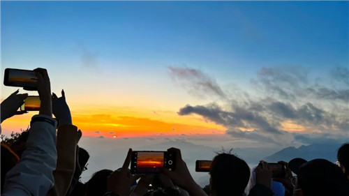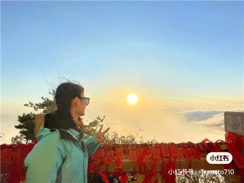 太陽一點(diǎn)一點(diǎn)西沉,將金色灑滿云層,遠(yuǎn)處的金殿,也浸潤在這無與倫比的浪漫中。一定要和喜歡的人,在老君山,并肩看一場日落云海呀!