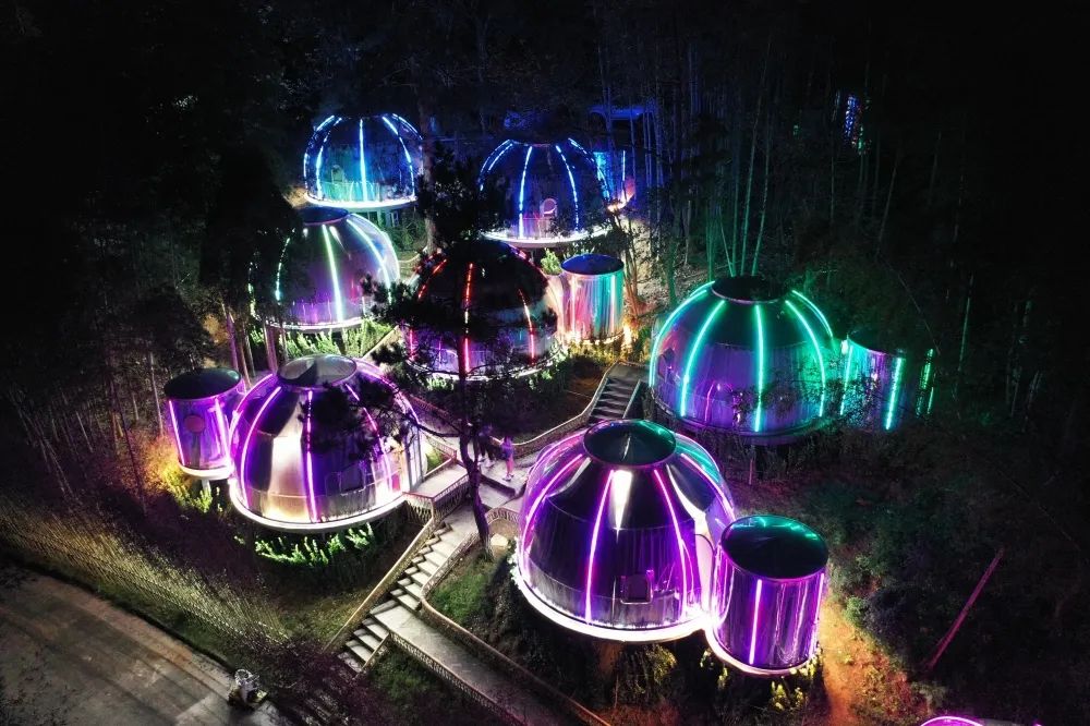 這里不單單有圓形、復式民宿,還有神仙都愛的網(wǎng)紅星空屋,可觀星云密布,亦可享受二人獨處時光。