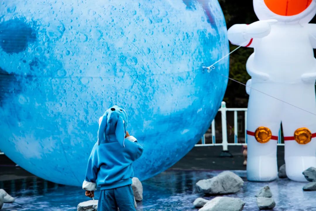 在中心廣場有一個超大月球