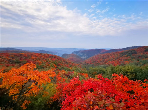 金秋至,秋風(fēng)起,層林盡染,片片緋紅,瑰麗似霞的紅葉耀眼奪目,此時(shí)的青天河,演繹著色彩斑斕的秋色美景。