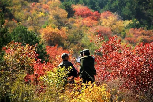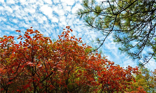 萬畝紅葉婀娜多姿,紅的鮮活,黃的亮眼,映紅藍(lán)天,蔚為壯觀,屬于秋天的美麗被發(fā)揮到了極致,自成一幅嫵媚的秋日美景畫,美得令人挪不開眼。