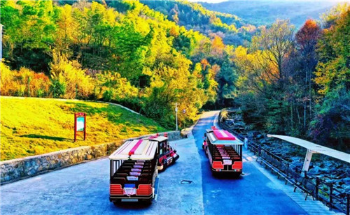 坐著小火車、紅葉綠水環(huán)繞其間,全然透著一派悠然閑適的韻味。無論是漫步其間,還是車上觀賞,都是拍照打卡的超贊地。