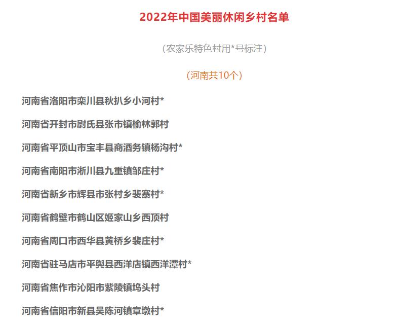 河南10個(gè)鄉(xiāng)村入選2022年中國(guó)美麗休閑鄉(xiāng)村名單