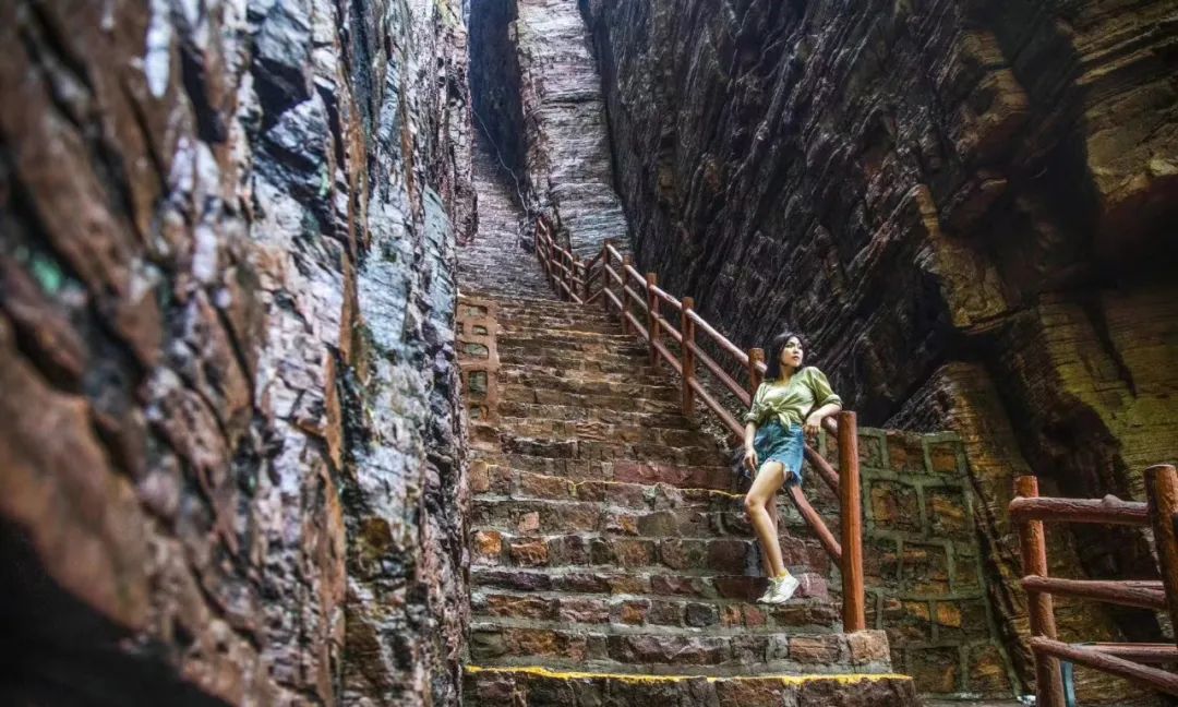 神門古道一線天是遠(yuǎn)古時(shí)代,仙人們上下山的唯一通道,故名“神門古道”。因通道極窄,由下向上望去,僅有一線天色,又稱一線天;傾斜度最大處70度、最窄處僅可單人通過,上下共有365個(gè)臺(tái)階。走過神門古道一線天,便是走過一年四季的平安。