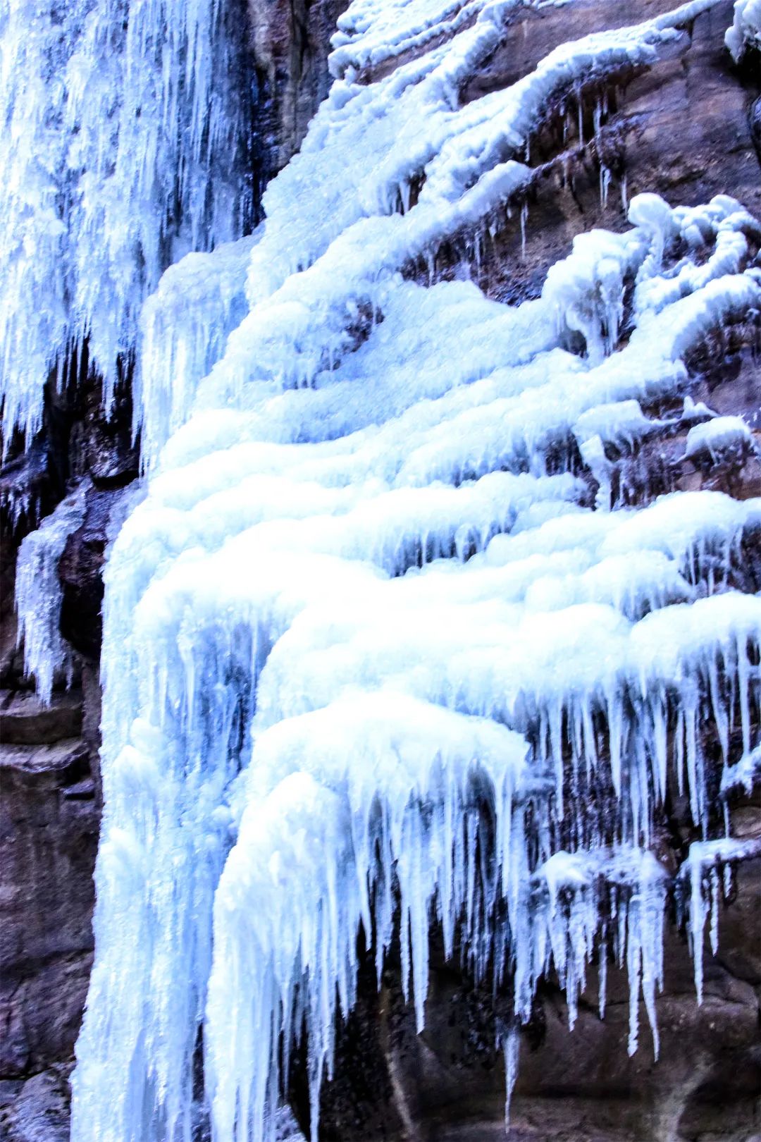 冰掛的形狀千奇百怪,有的像鐘乳石,有的像虬龍,在陽(yáng)光下閃著冰晶,更像珠簾翠幕,瑤樹琪花,把仙門山裝點(diǎn)的如人間仙境,這才是北國(guó)風(fēng)光應(yīng)有的風(fēng)情。