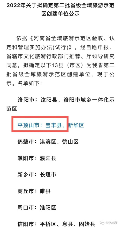 寶豐縣歷史悠久,文化厚重。秦置父城縣,北宋宣和二年,因境內(nèi)治鐵、制瓷、釀酒業(yè)興盛,寶貨興發(fā),物寶源豐,被宋徽宗賜名“寶豐”。寶豐是中國汝瓷文化之鄉(xiāng)、中國魔術(shù)之鄉(xiāng)、中國曲藝之鄉(xiāng)、中國酒文化之鄉(xiāng)、中國長壽之鄉(xiāng)和全國十佳文化旅游名縣。